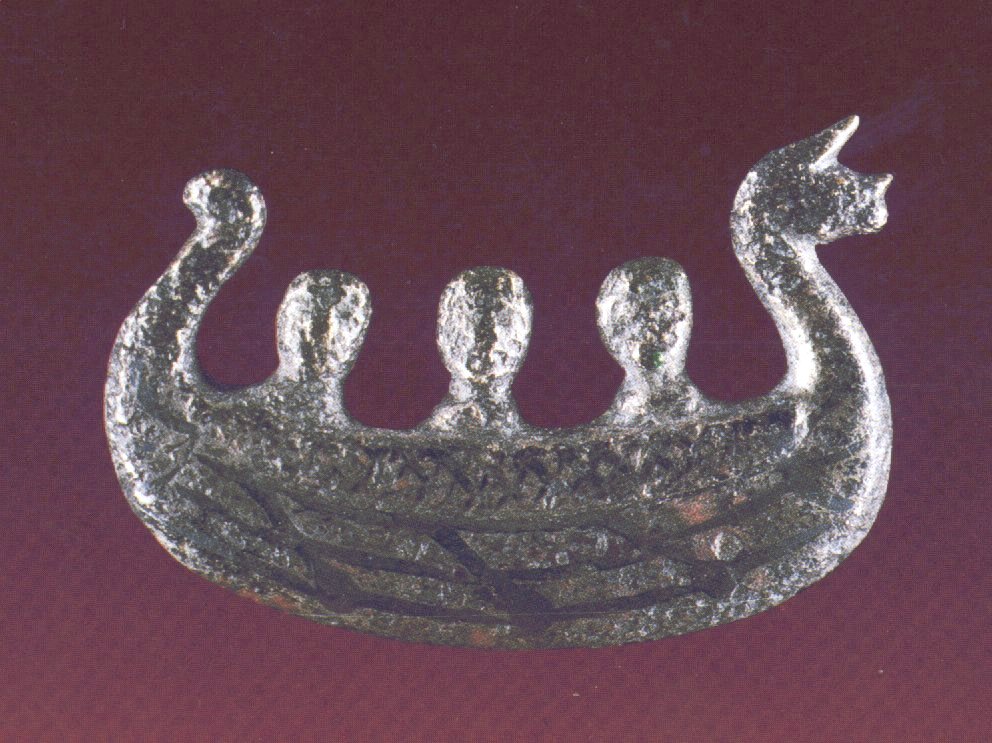 - Abbildung S. 420: »Drei Mann in einem Boot« Versilberte Bronzefibel von Neuburg a.d. Donau.