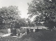 - Im Oktober 1933 erforschte der Historische Verein Ingolstadt zusammen mit dem Landesamt für Denkmalpflege einen der großen Hügel. Schon damals war neben Hauptlehrer Drexl aus Gerolfing Dr. Josef Reichart maßgeblich an der Planung und Durchführung der Ausgrabungen beteiligt. Den Grabungsleiter stellte das Landesamt für Denkmalpflege. Der Hügel wurde zuerst planmäßig in Quadranten untergliedert. Während der Ausgrabung wurden Erdprofile stehengelassen, um den Aufbau des Hügels genau dokumentieren zu können.