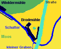 Kurz hinter der Brodmühle wurde die Schutter um etwa 90 Grad abgelenkt. Dies war nur durch eine künstliche Erhöhung des Schutterufers möglich.