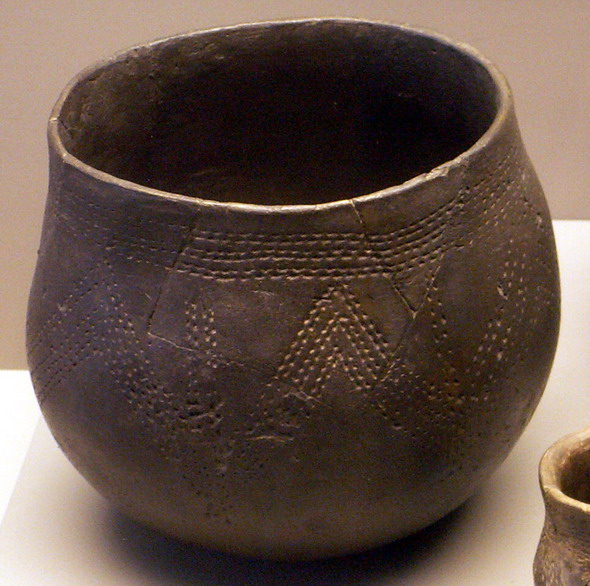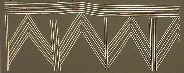 Dieses Hocker-Motiv gibt es als Einzelzeichen, aber auch in ornamentaler senkrechter Staffelung oder waagrechter Reihung wie etwa im umlaufenden Winkelmuster des untenstehenden Kumpfs von Menning.