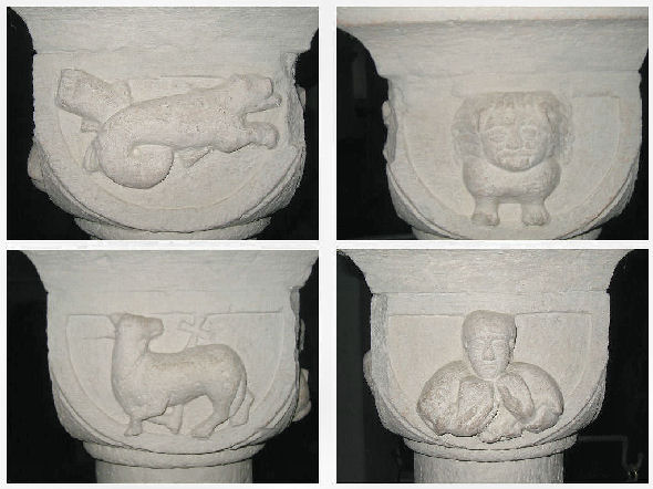 Die Kapitelle der Säulen zeigen Motive, welche sich auf die Offenbarung des Johannes beziehen könnten.