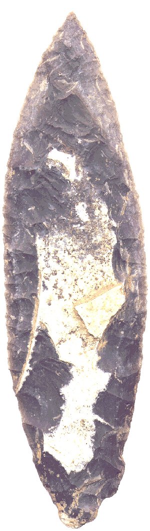 - Neben einem verzierten Becher fand sich ein ca. 17 cm langer, fein gearbeiteter Dolch aus Plattensilex.