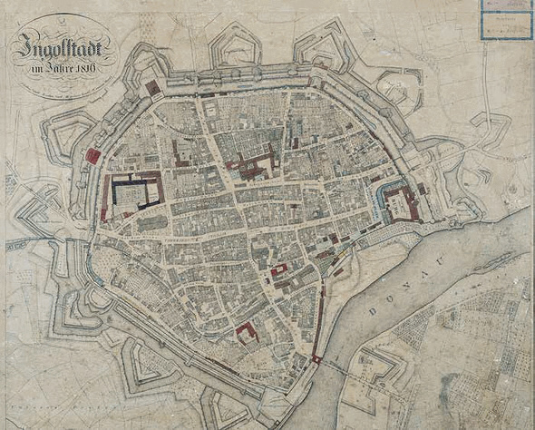 - Die Stadt Ingolstadt 1816. Bild: Stadtarchiv Ingolstadt