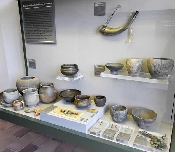 Auch die übrigen ausgestellten Funde leiten zur Völkerwanderungszeit und zum Frühen Mittelalter im Sinn bevölkerungsgeschichtlicher Kontinuität über.