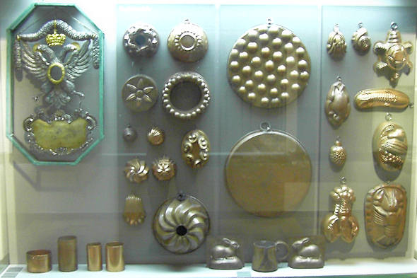 - Die Produktionspalette der Kupferschmiede umfasste Haushaltsgeschirr wie Töpfe, Pfannen, Becher, Flaschen, Backformen, Herdschiffe, Gießkannen, Siebe, Waschbecken, Bettwärmer aber auch höherwertige Gerätschaften wie Samoware, Leuchter oder Lampen.