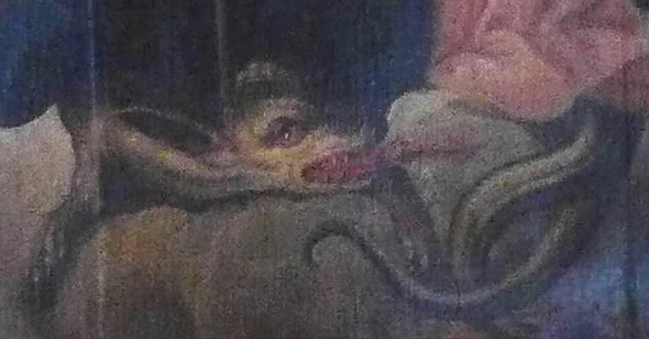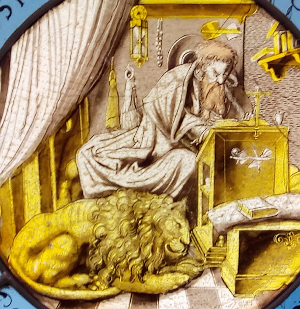 - Hinterglasbild mit Löwe, Argula auf Drachen