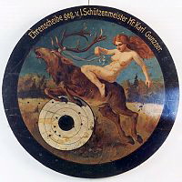 Schützenscheibe: Max II. Foto: Stadtmuseum. Schützenscheibe: Schützenliesl - Diana?. Foto: Stadtmuseum.