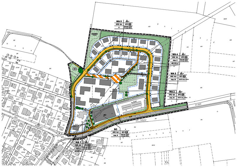 Die Grundstücksgrößen liegen im Bereich von 600 m² bis 900 m². Die Bebaubarkeit ist voraussichtlich im Sommer 2018 gegeben.