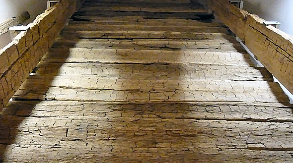 - Ende April dieses Jahres entdeckte man am westlichen Rand des Hofareals, in einer feuchten Senke eine 14 Meter lange und knapp drei Meter breite, sehr gut erhaltene kastenförmige Holzkonstruktion.