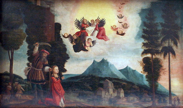 - Das Hauptbild des Altars zeigt die Kreuzigung mit den kienden Stiftern Georg Kaiser und seiner Frau, in der Predella die Enthauptung der hl. Barbara. Der Altar überrascht durch den Zusammenklang von vornehmer Altararchitektur und Bildwerk.