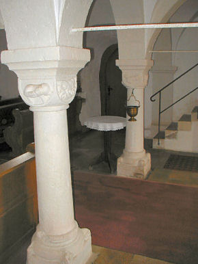 Die Kapitelle der Säulen zeigen Motive, welche sich auf die Offenbarung des Johannes beziehen könnten.