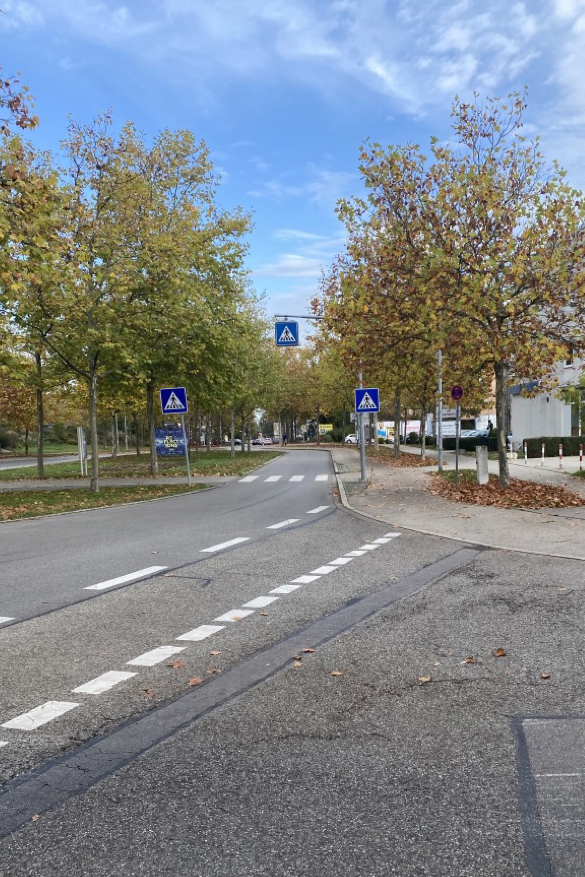 - Sichtbarkeit & Sicherheit: Roteinfärbung mehrerer Radfurten zur besseren Erkennbarkeit an Einmündungen – besonders wichtig, da Radfahrende hier auf einer Vorfahrtstraße unterwegs sind und höhere Geschwindigkeiten erreichen können.