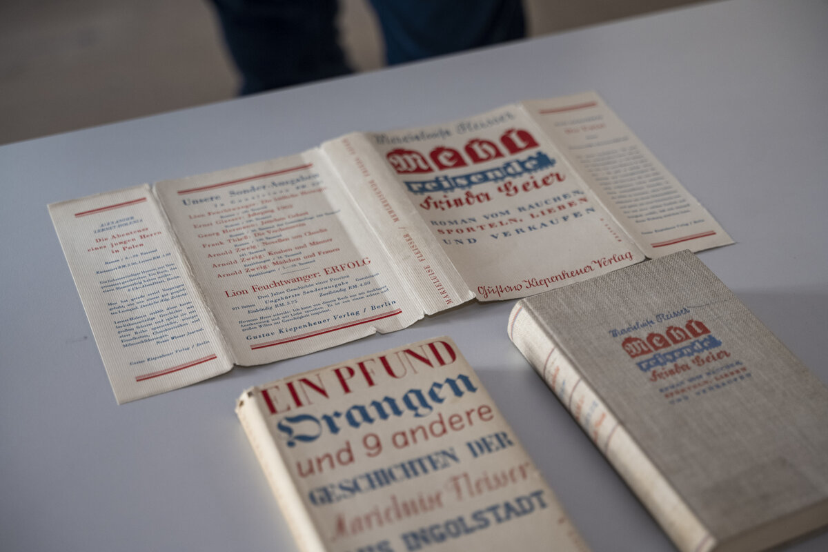 Zur Übergabe im Fleißerhaus kamen Kulturreferent Marc Grandmonagne, Kuratorin Doris Wittmann, der Vorsitzende der Fleißer-Gesellschaft Andreas Betz sowie Prof. Dr. Gustav Frank von der Ludwig-Maximilians-Universität München. Dabei berichtete Andreas Betz, dass im Nachlass von Marieluise Fleißer nur ein einziges ihrer Bücher einen solchen Schutzumschlag besaß und dass ebendieses Juwel nun wieder zurück in Ingolstadt sei.