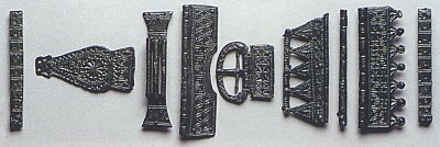 - An diesem Gürtel war wohl ursprünglich an einem bronzenen Haken ein Leder- oder Tuchbeutel befestigt, dessen Inhalt aus einer Pinzette, einem Feuerstein und einem Feuerstahl bestand; außerdem gehörte eine verzierte und durchlochte Scheibe aus der Rose eines Hirschgeweihs zum Inhalt.
