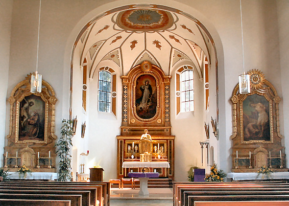 - Die Kirche wurde 1914 gebaut. Im Inneren sind Anklänge des kirchlichen Jugendstils erkennbar.