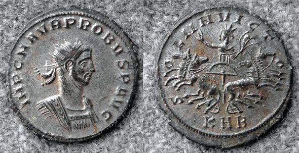 Probus, 276-282. Sol invictus in Quadriga nach links.