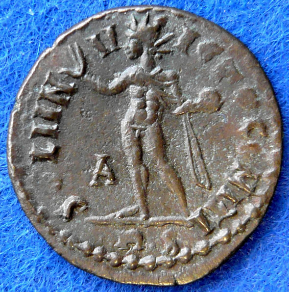 Constantin I. 309-337. Sol invictus mit Globus.