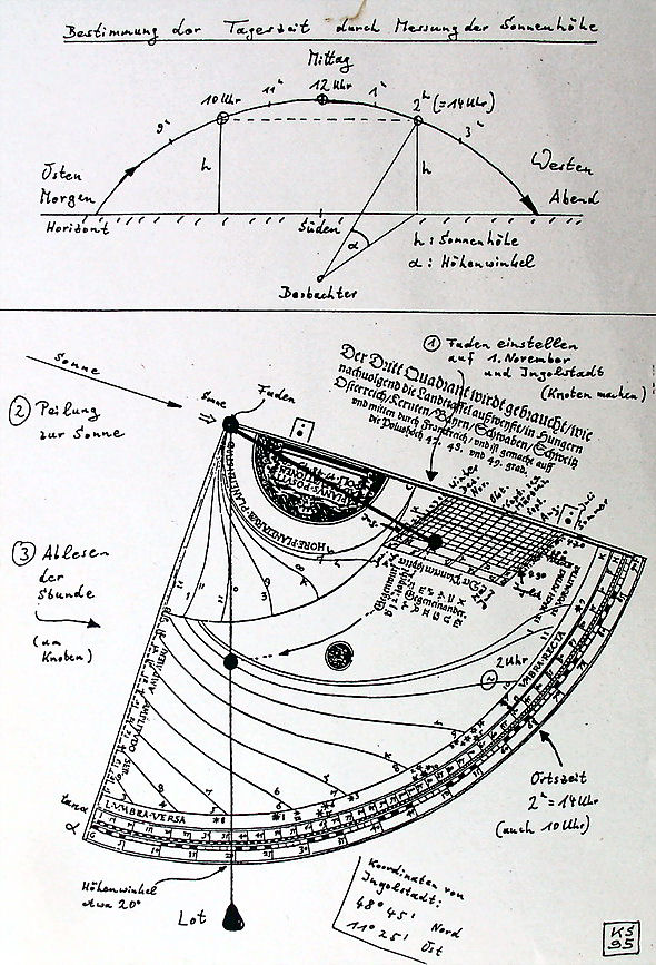 - Mit dieser Messung erhält man den Höhenwinkel der Sonne.