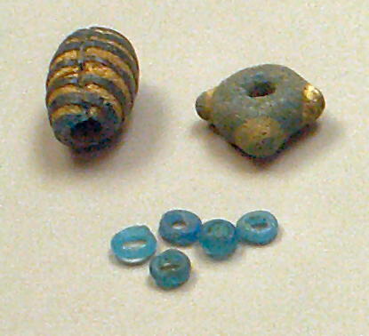 - Außergewöhnlich sind Gefäße mit Bronzenieten und die mit Gold und Eisen(!) verzierte Nadel.