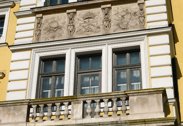 Neben typischen Rathausattributen wie Stadtwappen und Uhr macht auch die Justitia die öffentliche Funktion des Alten Rathauses augenfällig. Das Neue Rathaus verzichtet vollständig auf diese traditionelle Symbolik.