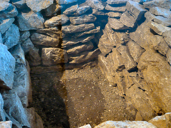 Sie steht hier zunächst als Beleg zielbewusster Rohstoffgewinnung und technisches Denkmal frühen Trockenmauerwerks.