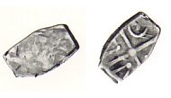 Ein Kreuz, dessen Balken sich bis an den Rand der Münze fortsetzen, mit verschiedenen Zeichen in den vier Winkeln, bildet den gewöhnlichen Typus der jüngeren, zumeist sehr roh geprägten Münzen dieses Volksstammes." (Bd. II, S. 140.)