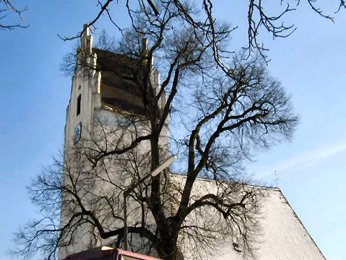 - "Die Kirche mit dem dicken, wehrhaften Turm wurde unter Bischof Gabriel von Eyb (1496-1535) erbaut und erhielt 1728 ihre heutige barocke Form.