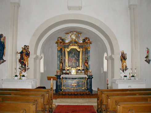 | Der Hochaltar in der romanischen Kirche von Weißendorf ist ein Werk des Altmannsteiner Künstlers Johann Georg Günther, dem Vater von Ignaz Günther, entstanden etwa 1760. |