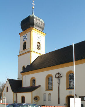 Die um 1200 errichtete romanische Kirche brannte 1580 weitgehend ab und wurde danach wieder aufgebaut. Im 30-jährigen Krieg erlitt das Dorf großen Schaden, worunter in der Folgezeit auch der Erhaltungszustand der Kirche litt. 1737 wurde sie vom Ingolstädter Stadtmaurermeister Michael Anton Prunntaller barock umgebaut.