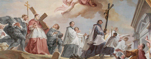 Sie stellen die Verehrung des Heiligen Kreuzes dar:
