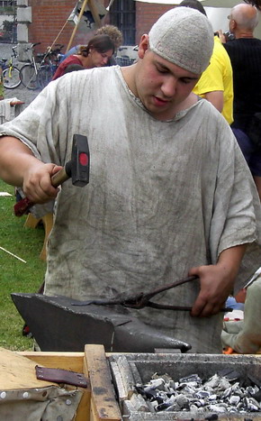 Der Schmied fertigte unter Mitwirkung der Kinder Pfeilspitzen, der Bronzegießer Schmuckstücke im Wachsausgussverfahren (s. Bild r. unten).